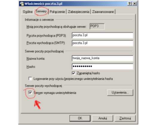 6.Na dole okna, w części Serwer poczty wychodzącej należy właczyć opcje: